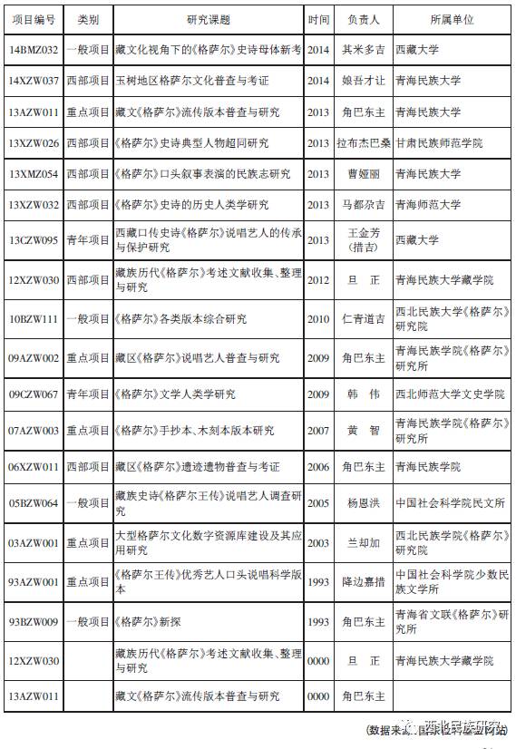 在对与《格萨尔》主题直接相关的课题立项的搜索中,我注意到,1984 年以来,在网站公开的信息中,国家社科基金共立项《格萨尔》各类研究项目39 项,教育部人文社会科学课题立项共25 项。①按照研究主题分类,这64 个项目大致可分为如下几个问题: