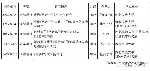 3. 史诗与宗教的关系。这一类选题要求学者在《格萨尔》和宗教研究领域都有相当程度的涉猎,故立项课题不多,只有5 项社科基金项目,其中3 项为普查类项目,研究项目只有2 项。
