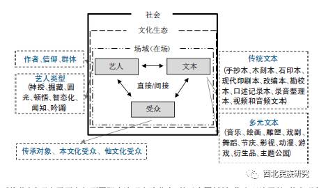 我认为,《格萨尔》史诗的未来研究,要勇于突破作者(艺人)中心主义和文本中心主义的桎梏,勇于建构开放的、立体的、多元—多维的理论架构(下图)。