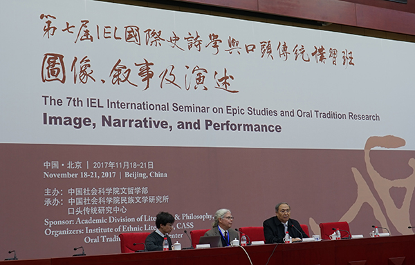 2017年11月18日,“第七届IEL国际史诗学与口头传统讲习班:图像、叙事及演述”(下称“讲习班”)在北京中国社会科学院学术报告厅举行。本届讲习班由中国社会科学院文哲学部主办,中国社会科学院民族文学研究所及其口头传统研究中心联合承办。中国社会科学院学部委员、民族文学研究所所长朝戈金研究员、美国布兰迪斯大学古典学荣休教授、哈佛大学希腊研究中心信息技术与出版部主任莱昂纳德•查尔斯•米尔纳(Leonard Charles Muellner)在开班式上致辞。